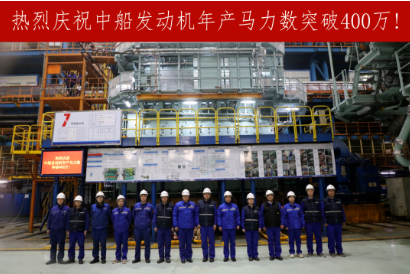 2023年12月28日,隨著CSB742/6S60ME-C10.5+HPSCR的成功交驗,中國動力子公司中船發動機2023年生產任務全面完成,年產成功突破400萬馬力,達到435萬馬力,創公司成立以來和三地歷史合并最好成績,這在中船發動機發展歷史上具有里程碑意義。