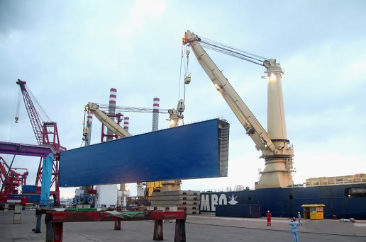 海西重機(jī)從設(shè)計研發(fā)、生產(chǎn)管理、質(zhì)量控制、風(fēng)險管控等方面高標(biāo)準(zhǔn)高質(zhì)量嚴(yán)格把控,對設(shè)備性能、安全性、使用維護(hù)等全面精心設(shè)計審核,對尺寸、精度、外觀、安裝接口位置等精準(zhǔn)控制,得到業(yè)主及駐廠意大利船級社監(jiān)理的認(rèn)可。考慮到用戶現(xiàn)場無大型起重設(shè)備,此次發(fā)運(yùn)采用具有2臺900噸克令吊的重吊船進(jìn)行作業(yè),滿足了所有吊裝和運(yùn)輸要求,不僅節(jié)約了項(xiàng)目成本,而且提高了裝卸船的工作效率。