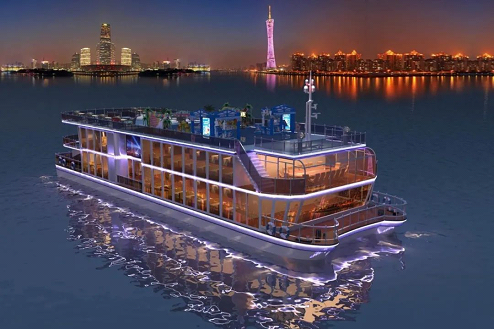 160客位“闊闊真公主號(hào)”游船總長(zhǎng)36m,型寬8m,型深3m。該船是仿七百多年前元朝忽必烈女兒闊闊真公主遠(yuǎn)嫁波斯時(shí)乘坐的古船建造而成,有“福船送福”的寓意。建造后舉辦古港帆影燈光秀行走珠江,夜游展示亞洲文化交流的傳奇,是不可多得的文化遺產(chǎn)。