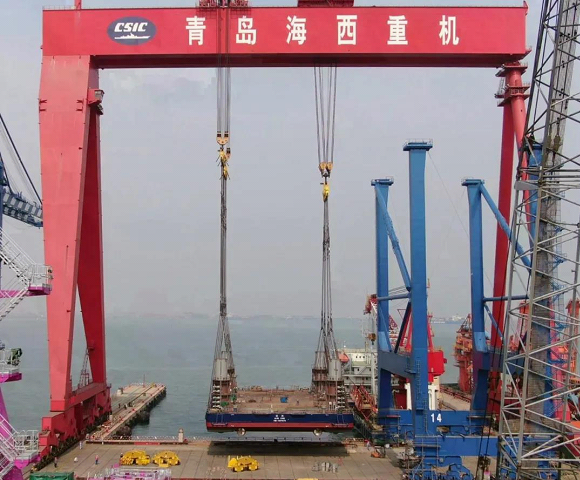 3月31日,中國船舶集團旗下中國動力子公司武漢船機海西重機總包承建的華東院306自升式海上勘探平臺完成整體吊裝下水重大節點。