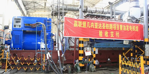 2019年11月,公司與中船重工電機科技股份有限公司成功實現項目簽約,為贏聯盟幾內亞達圣鐵路項目提供4臺/套SXD-MAN9L32/40型重油發電機組和機械輔助設備。