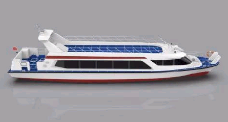 新疆喀納斯新能源游船總長19.7米,船寬4.5m,型深1.6m,最大航速18km/h,乘客60人。
