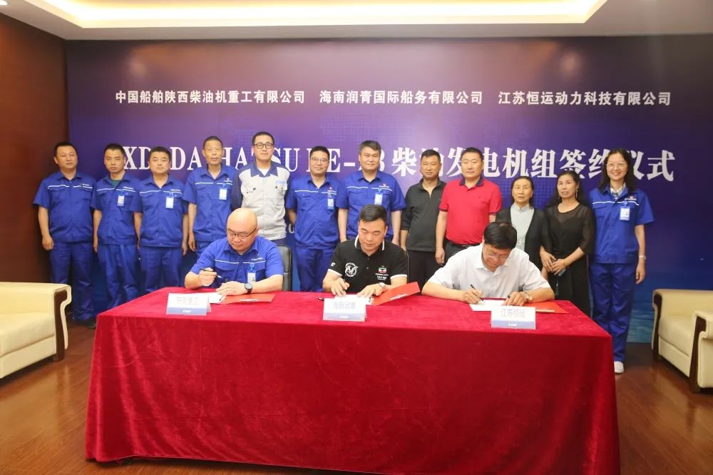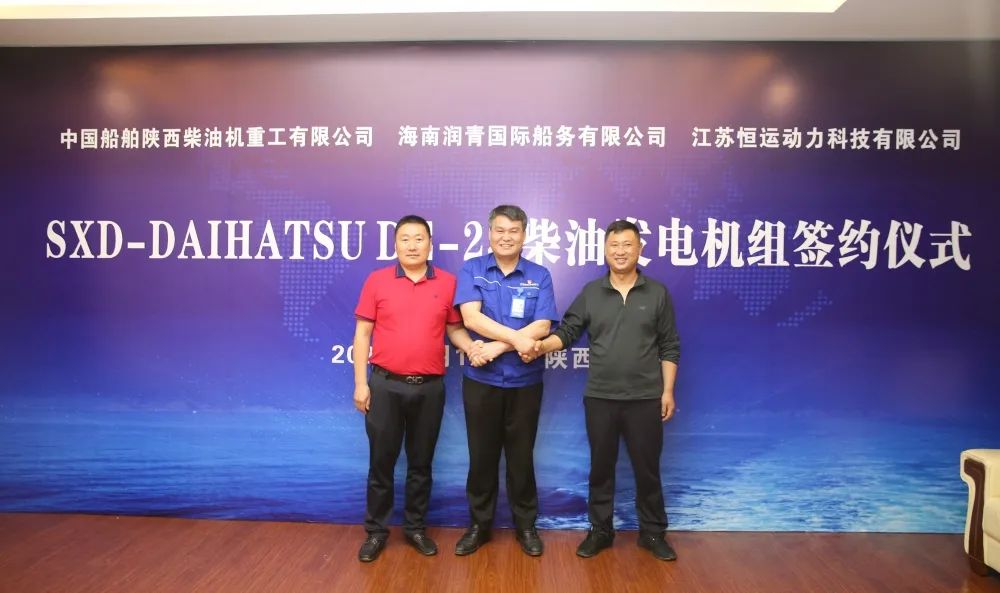 6月10日,中國船舶集團(tuán)旗下中國動(dòng)力子公司陜柴重工首批SXD-DAIHATSU 6DE-23發(fā)電機(jī)組簽約儀式在陜柴重工信息樓一樓會(huì)客廳舉行,海南潤青國際船務(wù)有限公司董事長劉長青,江蘇恒運(yùn)動(dòng)力科技有限公司董事長王振山,陜柴重工黨委書記、董事長趙同賓,日本大發(fā)公司駐廠技術(shù)總監(jiān)李海鵬和相關(guān)單位負(fù)責(zé)同志及用戶代表共同見證了簽約儀式。