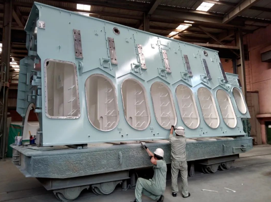 經過三個多月的奮戰,8月20日,中國船舶集團旗下中國動力子公司中國船柴大柴公司為上海滬東重機生產的最后一臺6S60ME-C主機機架發往上海。至此,大柴公司順利完成為滬東重機生產的5臺6S60ME-C主機機架的任務,體現了中國船柴“大疫”面前有“大義”的擔當精神。