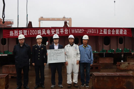 近日,中國船舶集團旗下中國動力子公司武漢船機總承建造的華夏金租“神大101” “神大102”兩座1200T風電安裝平臺順利進入龍骨鋪設階段,標志著該兩個平臺全面進入平臺合攏搭載建造階段。