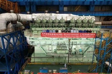 3月13日,由中國船舶集團(tuán)旗下中國動力子公司中船動力下屬上海中船三井造船柴油機(jī)有限公司建造的全球首制CMD-WinGD 9X92DF-2.0 iCER雙燃料主機(jī)順利交付。該主機(jī)將安裝于滬東中華為法國達(dá)飛海運(yùn)集團(tuán)建造的13000TEU集裝箱船。