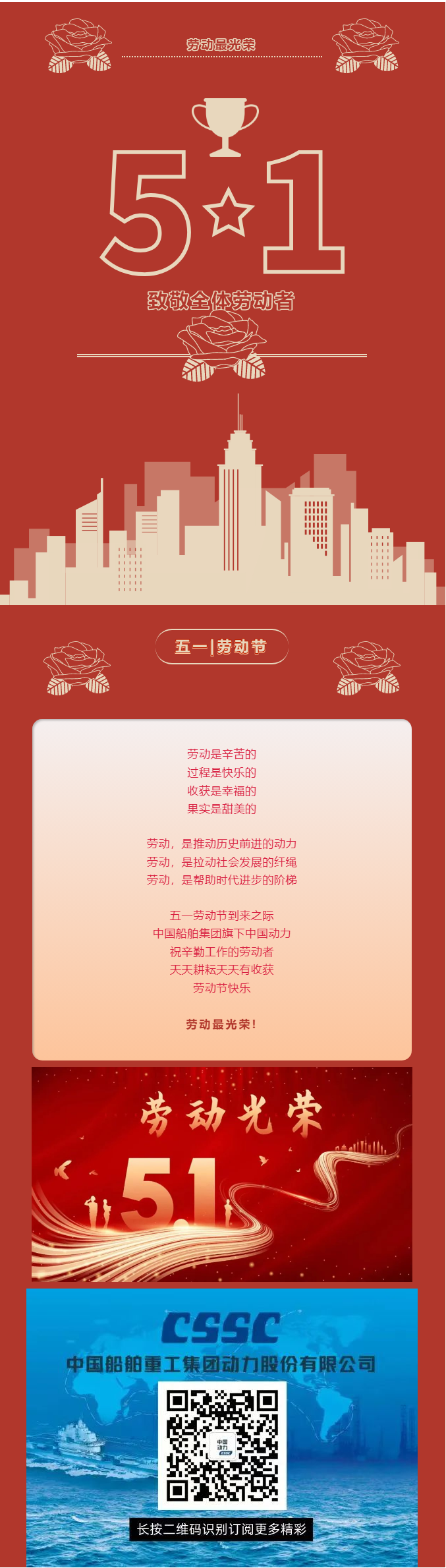 中國船舶重工集團動力股份有限公司祝您五一勞動節快樂!