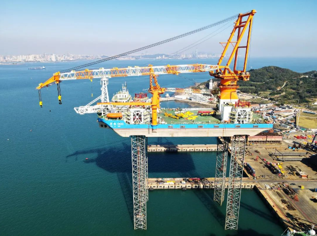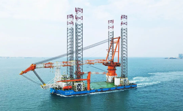 中國船舶武漢船機1600噸自升式海上風電安裝平臺“華西1600”交付