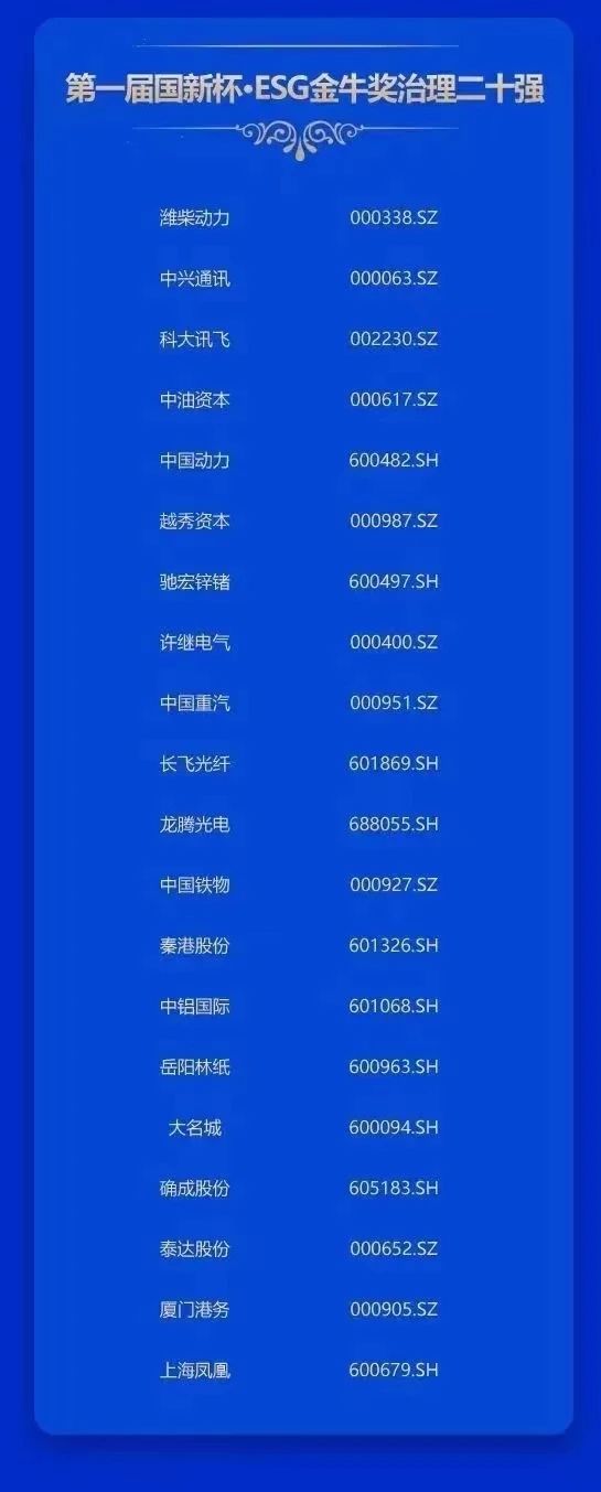 2023年11月24日,由中國國新、中國證券報和南通市人民政府共同舉辦的2023金牛企業可持續發展論壇暨第一屆國新杯·ESG金牛獎頒獎典禮在江蘇南通召開,中國動力榮獲治理二十強獎項。