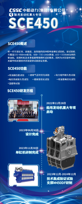 450mm缸徑單缸技術集成驗證平臺是船用發動機重大專項的重要標志性成果,將為后續大缸徑中速雙燃料發動機開展高可靠性關鍵技術研究、關重件試驗驗證和船用450mm缸徑中速雙燃料機研制的設計開發奠定堅實基礎。