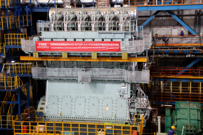 3月29日,世界首臺W6X72DF-2.2+iCER主機在中國船舶集團旗下中國動力子公司中船發動機成功交驗,該主機將安裝在大連船舶重工集團有限公司為CMES LNG CARRIER建造的175000DWT LNG運輸船上。這款主機最大持續功率2.12萬馬力、重達550噸,首次配備iCER低壓廢氣循環技術,廢氣循環率高達50%,相比傳統機型,處理廢氣更加綠色高效。無論是在燃油和燃氣模式下,該主機都能滿足TierIII排放要求,其燃燒性能、排放性能、燃油消耗進一步優化,更加符合船舶行業綠色低碳的發展趨勢。此外,該主機在發動機能耗、系統集成度以及系統安全性等方面具有較強市場競爭優勢。