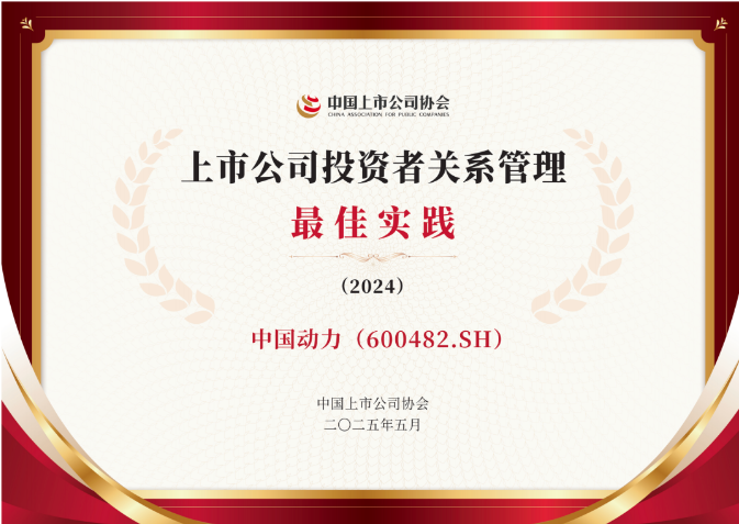 近日,中國動力成功入選中國上市公司協會“上市公司投資者關系管理最佳實踐(2024)”,這是公司連續第二年榮獲這一資本市場重要榮譽,充分彰顯了監管機構、投資者及市場各界對公司長期規范運作與價值傳遞能力的高度肯定。
