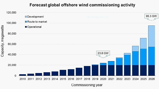 總體而言,RCG從其《全球海上風能:年度市場報告》中得出的展望是,至少從2022年起,全球市場將達到并保持每年6吉瓦的增長量。