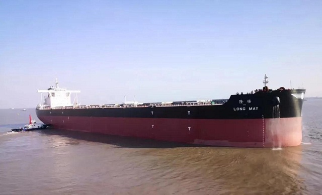 ????4月23日,中國船舶集團旗下外高橋造船為美國福茂集團建造的21萬噸散貨船“隆梅”號簽字交付?!奥∶贰碧栭L299.88米,型寬50米,型深25.2米,設計吃水16.1米,滿足國際海事組織(IMO)TIER III 排放標準和散貨船、油船協調共同結構規范(HCSR),并安裝了脫硫裝置,入級美國船級社。