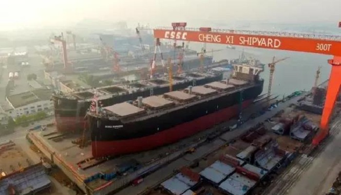 △ 中船澄西建造的7萬噸木屑船順利下水(點(diǎn)擊圖片查看新聞詳情)