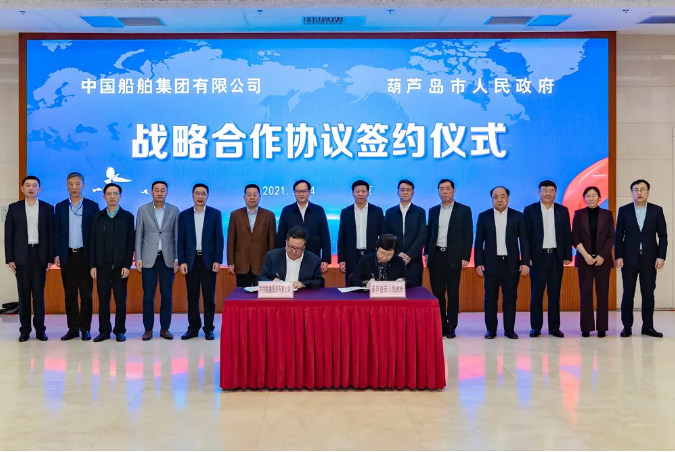 3月24日,中國船舶集團有限公司與葫蘆島市人民政府在京簽署戰略合作協議。中國船舶集團黨組副書記、總經理楊金成,葫蘆島市委副書記、市長楊軍生,市委常委、副市長張明謙出席簽約儀式。中國船舶集團黨組成員、副總經理錢建平,葫蘆島市副市長黃曉霞分別代表雙方在協議上簽字。簽約前,雙方圍繞共同服務國家戰略,就進一步加強交流合作、實現共同發展進行了深入交流。