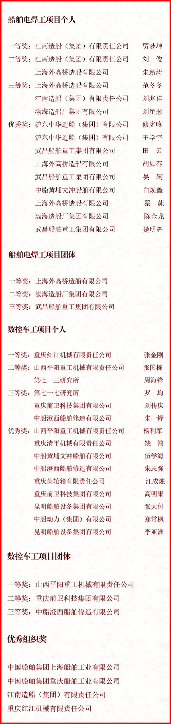 光榮榜來了!中國船舶集團職業技能競賽成功舉辦!