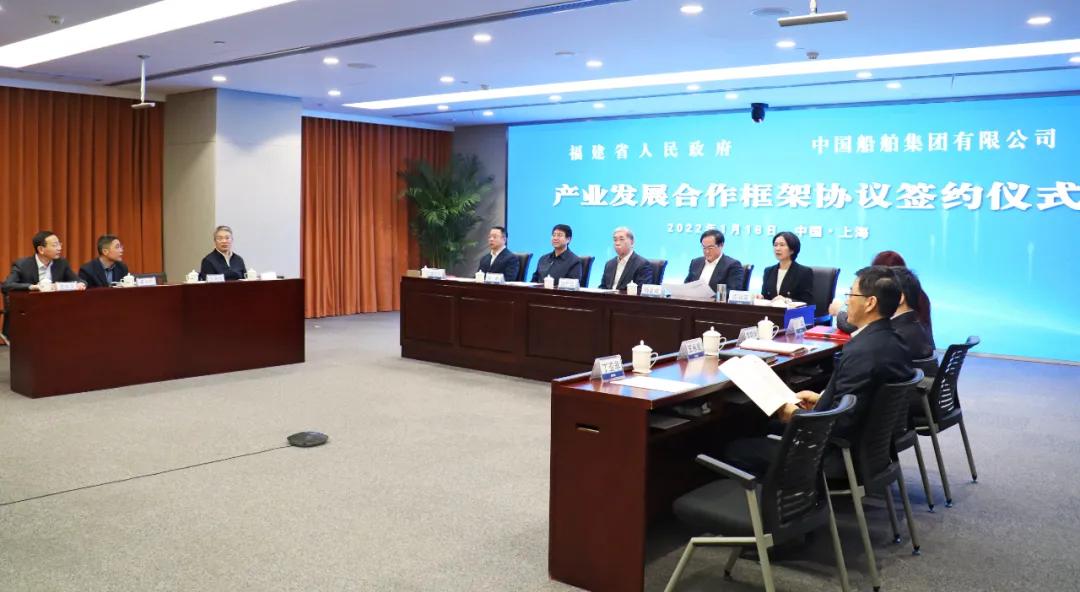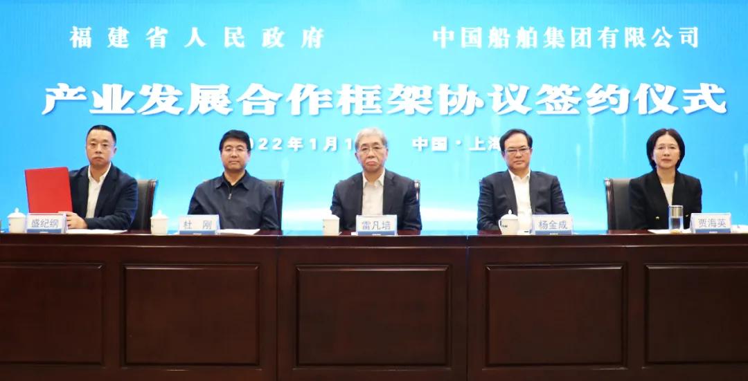 1月18日,中國(guó)船舶集團(tuán)有限公司與福建省人民政府通過(guò)“云簽約”方式簽署戰(zhàn)略合作協(xié)議。中國(guó)船舶集團(tuán)黨組書(shū)記、董事長(zhǎng)雷凡培,黨組副書(shū)記、總經(jīng)理?xiàng)罱鸪桑h組副書(shū)記、董事杜剛,黨組成員、總會(huì)計(jì)師賈海英,黨組成員、副總經(jīng)理盛紀(jì)綱;福建省委書(shū)記尹力,省委副書(shū)記、代省長(zhǎng)趙龍,省委常委、常務(wù)副省長(zhǎng)郭寧寧,省委常委、秘書(shū)長(zhǎng)吳偕林,副省長(zhǎng)康濤出席簽約儀式。盛紀(jì)綱、郭寧寧分別代表雙方在協(xié)議上簽字。