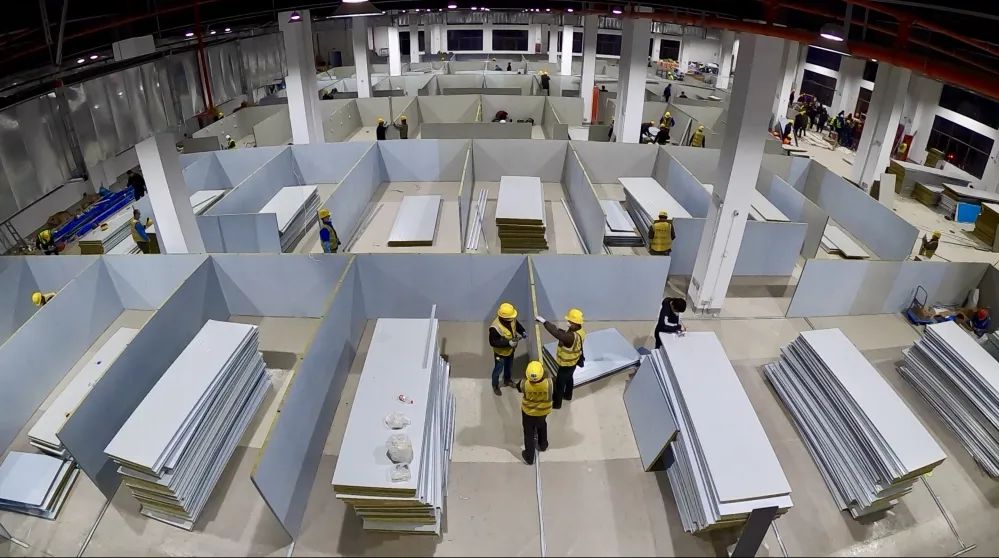 長(zhǎng)興島疫情突發(fā),醫(yī)療資源嚴(yán)重匱乏,上海市和崇明區(qū)政府緊急啟動(dòng)應(yīng)急措施,盡快建起集中隔離治療場(chǎng)所成了當(dāng)務(wù)之急。長(zhǎng)興島防疫抗疫工程建設(shè)項(xiàng)目分三期,包括3個(gè)集中收治點(diǎn)和1個(gè)隔離觀察點(diǎn),總施工面積超10萬(wàn)平方米,需在10天內(nèi)建成。
