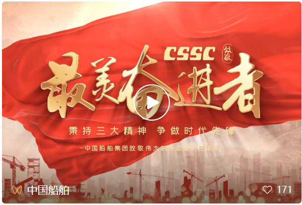 致敬勞動者 弘揚奮斗精神,激發科技創新 弘揚勞模精神,唱響勞動贊歌 弘揚創新精神,譜寫時代華章 勞動創造價值 奮斗創造光榮 致敬中國船舶的勞動者們! 奮進的船舶人