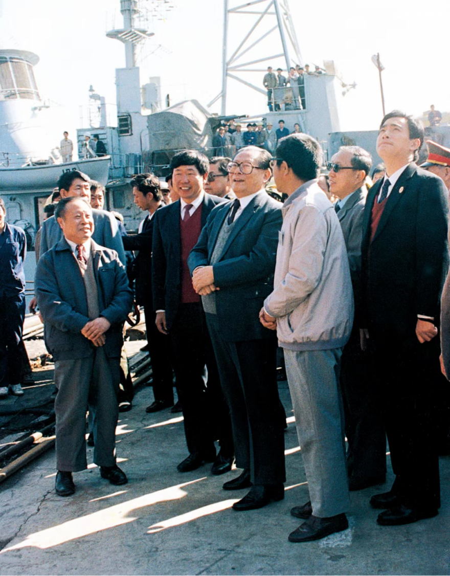 江澤民同志曾先后三次到江南造船視察。圖為1994年4月29日,江澤民同志視察江南造船。據(jù)相關(guān)人士回憶,當(dāng)時江澤民同志視察江南有兩個原因,一是“五一”節(jié)快要到了,江澤民同志要看望工人階級,就選擇了江南造船,因為江南造船是產(chǎn)業(yè)工人的搖籃;第二個原因是112艦計劃當(dāng)年5月8日前交艦,交艦前江澤民同志要先視察。