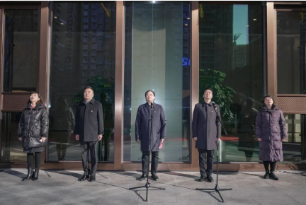 集團公司科技委主任,在滬總助級領導,總部各部門、科技委日常工作機構干部職工及物業公司員工代表參加升旗儀式。