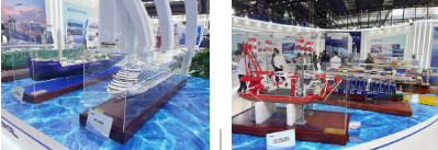 重點展示奮力摘取造船業(yè)最后一顆明珠的首制國產大型郵輪,以風、光、甲醇裝備等為主體的綠色船舶等高端海洋裝備、以“商業(yè)模式創(chuàng)新+創(chuàng)新技術應用”為引領的海洋文旅、深海養(yǎng)殖、海上風電等新興海洋經濟裝備、踐行“服務國家戰(zhàn)略”企業(yè)使命的與自然資源部和廣東省合作項目成果等,展現(xiàn)了中國船舶集團作為世界第一造船集團的總體實力、企業(yè)使命。