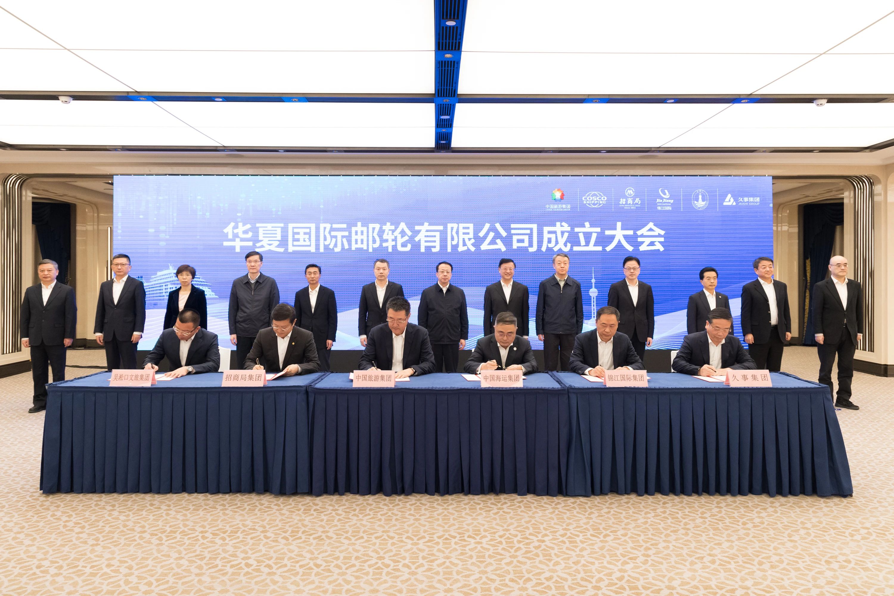 成立大會上,龔正、陳寅為華夏國際郵輪有限公司揭牌。中國旅游集團(tuán)、中國遠(yuǎn)洋海運集團(tuán)、招商局集團(tuán)、錦江國際集團(tuán)、上海久事集團(tuán)、吳淞口文旅投資集團(tuán)相關(guān)負(fù)責(zé)同志簽約。
