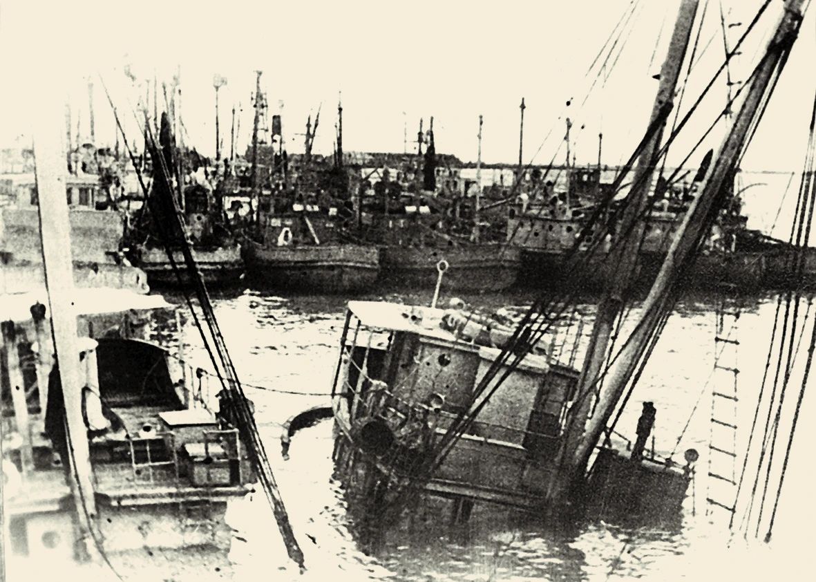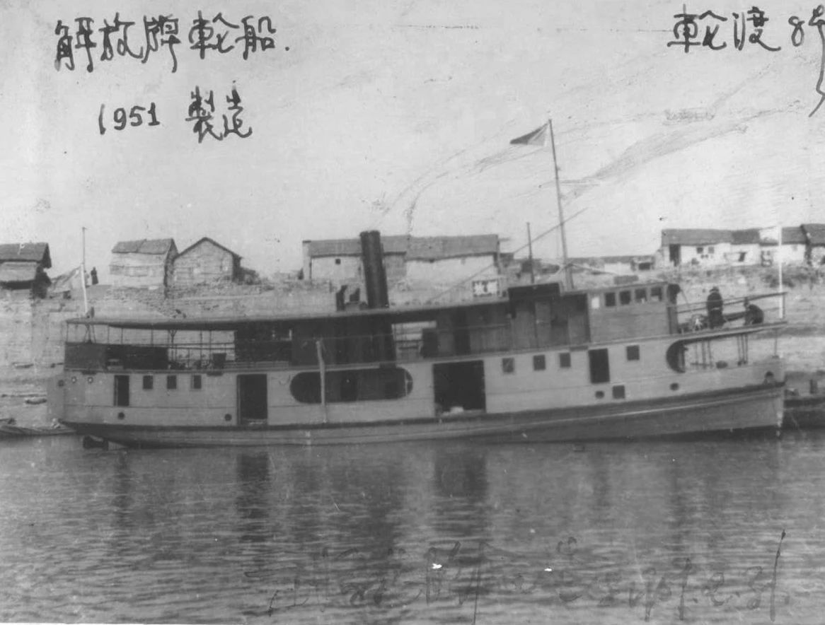 1950年廣州1950年,萬山海戰功臣“前進號”炮艇在工廠下水。