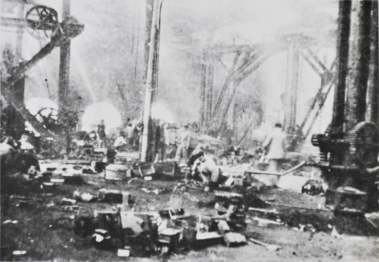 1949年5月上海,雖然江南造船所經歷了英勇的護廠斗爭,但此時的船塢、廠房、設備,均已遭受到嚴重的破壞。