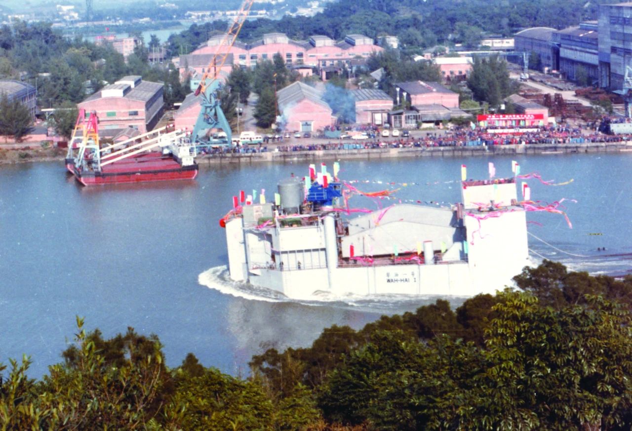 1984年廣州,黃埔文沖率先進軍國際海洋工程市場,1984年交付的“華海一號”是當時國內建造的最大的鉆井平臺。