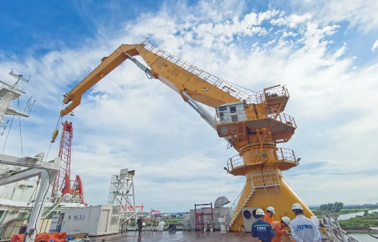 中國船舶集團(tuán)旗下華南船機(jī)為“夢(mèng)想”號(hào)配套重要作業(yè)設(shè)備——50噸折臂起重機(jī),助力“夢(mèng)想”起航。