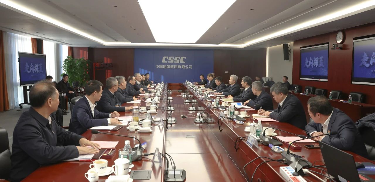 徐鵬對(duì)段向東一行的來訪表示歡迎,并介紹了集團(tuán)公司業(yè)務(wù)發(fā)展情況。徐鵬表示,中船集團(tuán)與中鋁集團(tuán)長(zhǎng)期以來保持良好合作關(guān)系,交流合作廣泛、基礎(chǔ)深厚、前景廣闊。中船集團(tuán)將按照“1-1-7-8”總體思路奮力推進(jìn)世界一流船舶集團(tuán)建設(shè)邁上新臺(tái)階,希望雙方建立健全長(zhǎng)效溝通合作機(jī)制,協(xié)同推進(jìn)關(guān)鍵技術(shù)、裝備研制攻關(guān),深化多領(lǐng)域、多層次合作,共同服務(wù)好國家重大戰(zhàn)略。