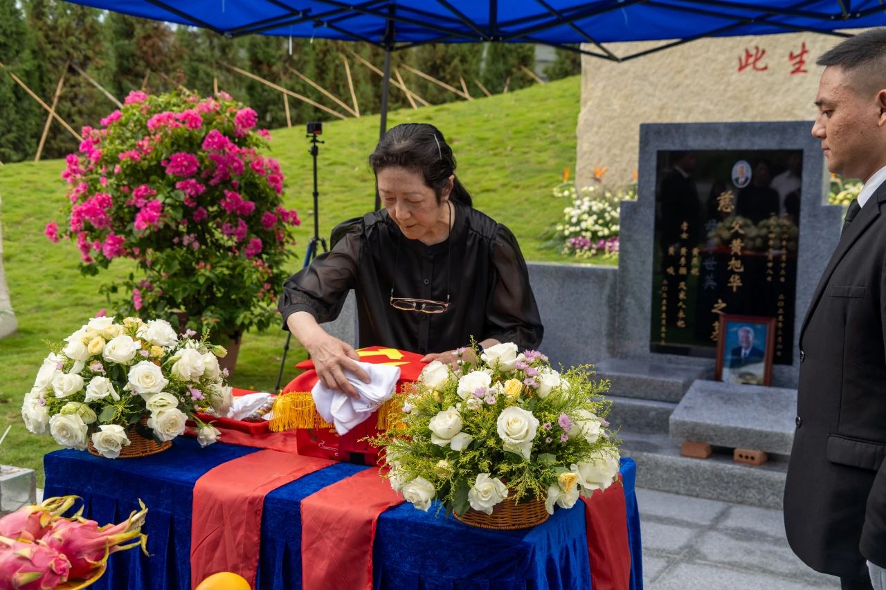 親屬代表擦拭墓碑后,在禮賓人員的引導(dǎo)下將黃旭華院士的骨灰安放進(jìn)墓穴。人們向黃旭華院士墓碑行三鞠躬禮,并敬獻(xiàn)鮮花,以簡(jiǎn)約而莊重的儀式,送別國(guó)之脊梁。
